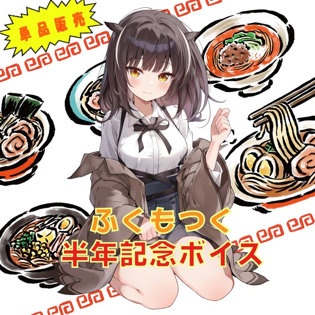 ※「ふくもつく 半年記念ボイスセット」に含まれているボイスの単品販売となります。 すでにご購入済みの方はお気を付けください。 商品名:ふくもつく ふくもつく半年記念ボイス単品販売 「ラーメンボイス_環境音あり」 ふくもつく半年記念として登場したボイスセットの中から、特別に「ラーメンボイス_環境音あり」を単品販売いたします! ふくもつくの新たなボイスを、特別に単品でお届けします!「ラーメンボイス」は、ふくもつくのラーメン愛があふれるシチュエーションボイスとなります。 ● 商品特徴 ・ラーメン屋で偶然出会ったひと時を切り取ったボイスとなります。 ・デジタル商品なので、スマートフォンやPCで手軽に楽しむことができます! ・ラーメン屋で聞いたら一緒にラーメン屋を訪れている気分になれます。 この「ラーメンボイス」は、ふくもつくの優しい声に加え、心を落ち着ける環境音が特長です。ぜひ、日常のひとときに取り入れてみてくださいね! ※こちらの商品はデジタル商品のため、Baseの仕様上メンバーシップポイントの付与はございませんのでご注意ください。